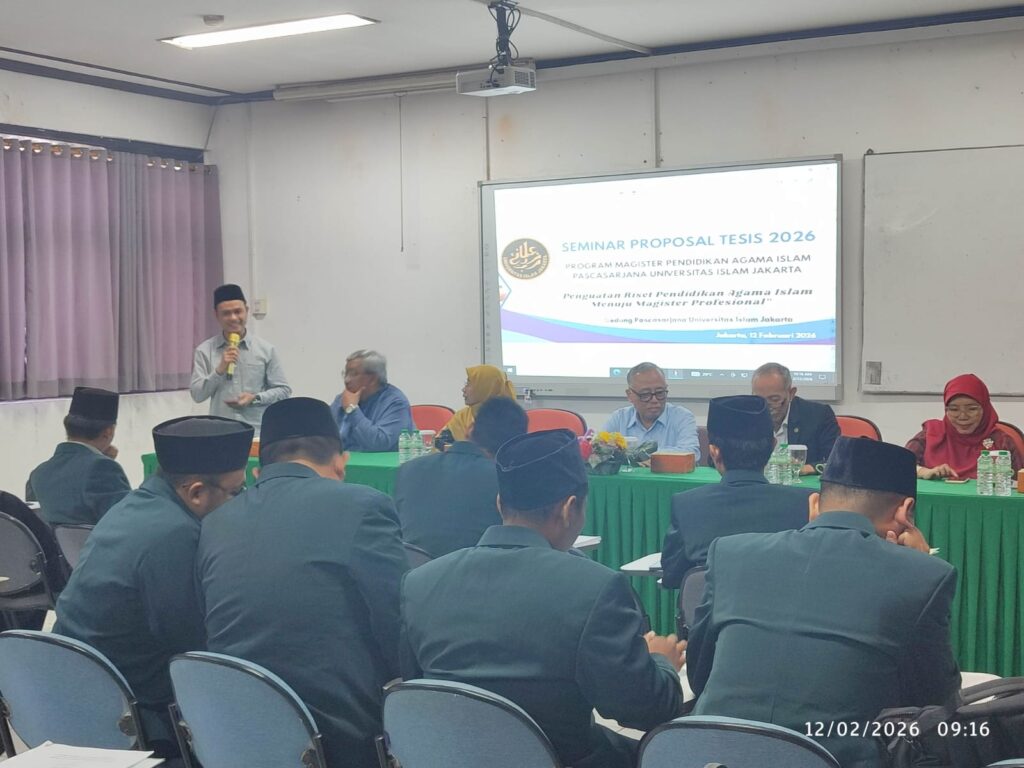 Pada hari ini. Sejumlah mahasiswa Pendidikan Kader Ulama (PKU) yang bekerjasama dengan pascasarjana Universitas Islam Jakart (UIJ) sukses menyelenggarakan seminar proposal tesis mereka, menandai langkah awal penting dalam perjalanan penelitian akademik. Berlangsung di Gedung Pascasarjana UIJ, yang beralamat di Jl. Balai Rakyat Matraman, Jakarta Timur.Jakarta, (12 Februari 2026)
