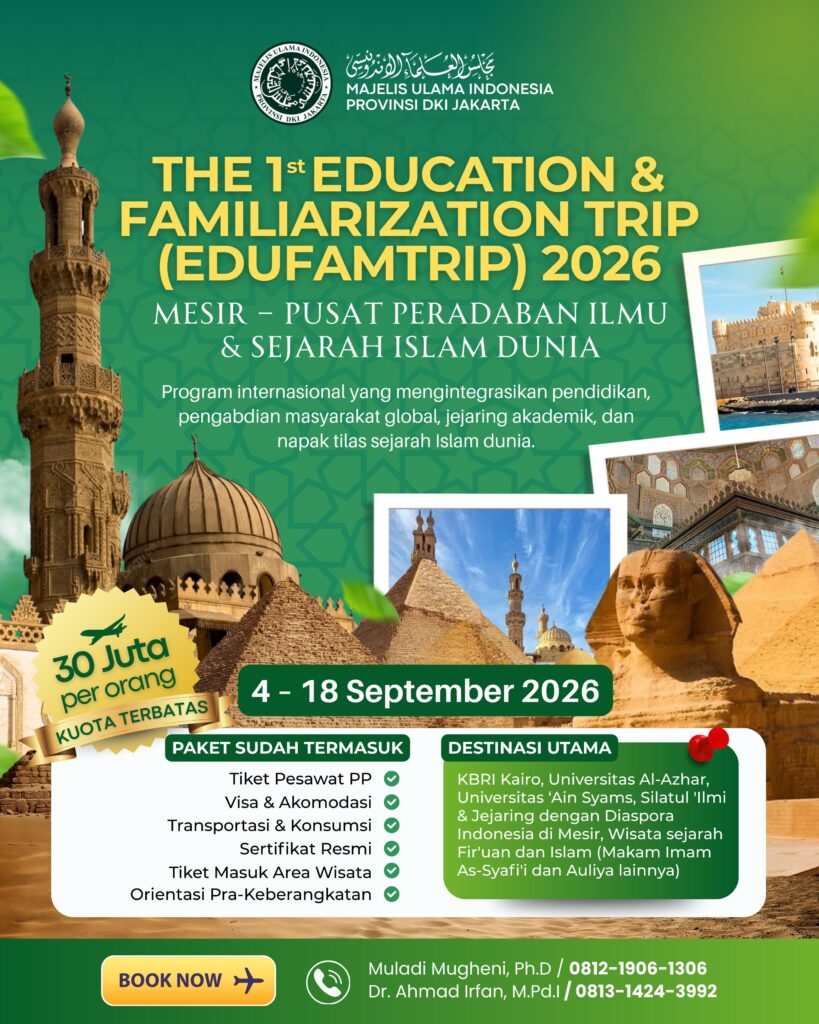 Mari bergabung dalam EDUFAMTRIP I tahun 2026 ke Mesir β€” Program prestisius yang menggabungkan pendidikan, pengabdian masyarakat internasional, pengenalan ekosistem perkuliahan Indonesia dan tapak tilas sejarah ke pusat peradaban Islam dunia..!!!